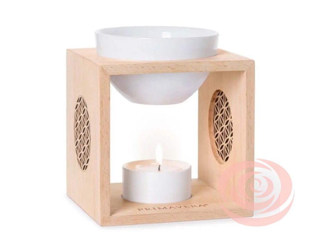 Voňavý zážitok v atmosfére svetla sviečok. Ručne vyrobená lampa z bukového dreva s dizajnom kvetu života.
